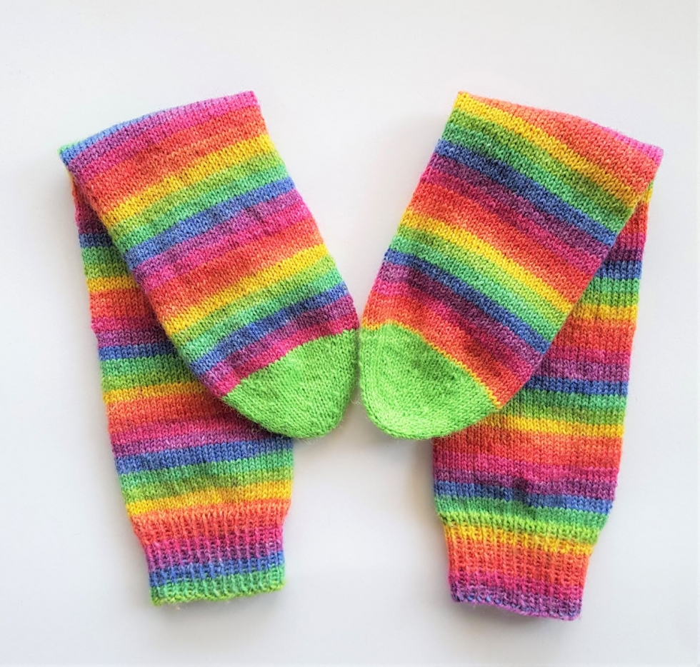 Fertig sind die hübschen Regenbogensocken. Mini - die mit dem gestrigen Tag ihr Abi in der Tasche hat - hat sich sehr gefreut über die langen bunten ringeligen Socken!